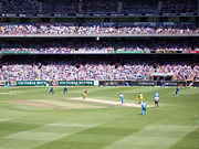 A cricket pitch often starts with a thin cover of green blades, but over the course of a five-day match tends to dry out and harden. Even in one-day matches cricket pitches are often nearly bare earth covered only by a layer of dry yellow stalks.