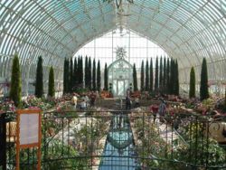 In the nineteenth Century the largest greenhouses were built. The conservatory at Kew Gardens in England is a prime example of the Victorian greenhouse. Although intended for both horticultural and non-horticultural exhibition these included London's Crystal Palace, the New York Crystal Palace and Munich’s Glaspalast. Joseph Paxton, who had experimented with glass and iron in the creation of large greenhouses as the head gardener at Chatsworth, in Derbyshire, working for the Duke of Devonshire, designed and built the first, London's Crystal Palace. A major architectural achievement in monumental greenhouse building were the Royal Greenhouses of Laeken (1874-1895) for King Leopold II of Belgium.