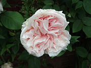 The hybrid musk group was primarily developed by Rev. Joseph Pemberton, a British rosarian, in the first decades of the 20th century, based upon 'Aglaia', a 1896 cross by Peter Lambert. A seedling of this rose, 'Trier', is considered to the be foundation of the class. The genetics of the class are somewhat obscure, as some of the parents are unknown. Rose multiflora, however, is known to be one parent, and R. moschata (the musk rose) also figures in its heritage, though it is considered to be less important than the name would suggest. Hybrid musks are disease-resistant, remontant and generally cluster-flowered, with a strong, characteristic "musk" scent.[1][2] Examples include 'Buff Beauty' and 'Penelope'.